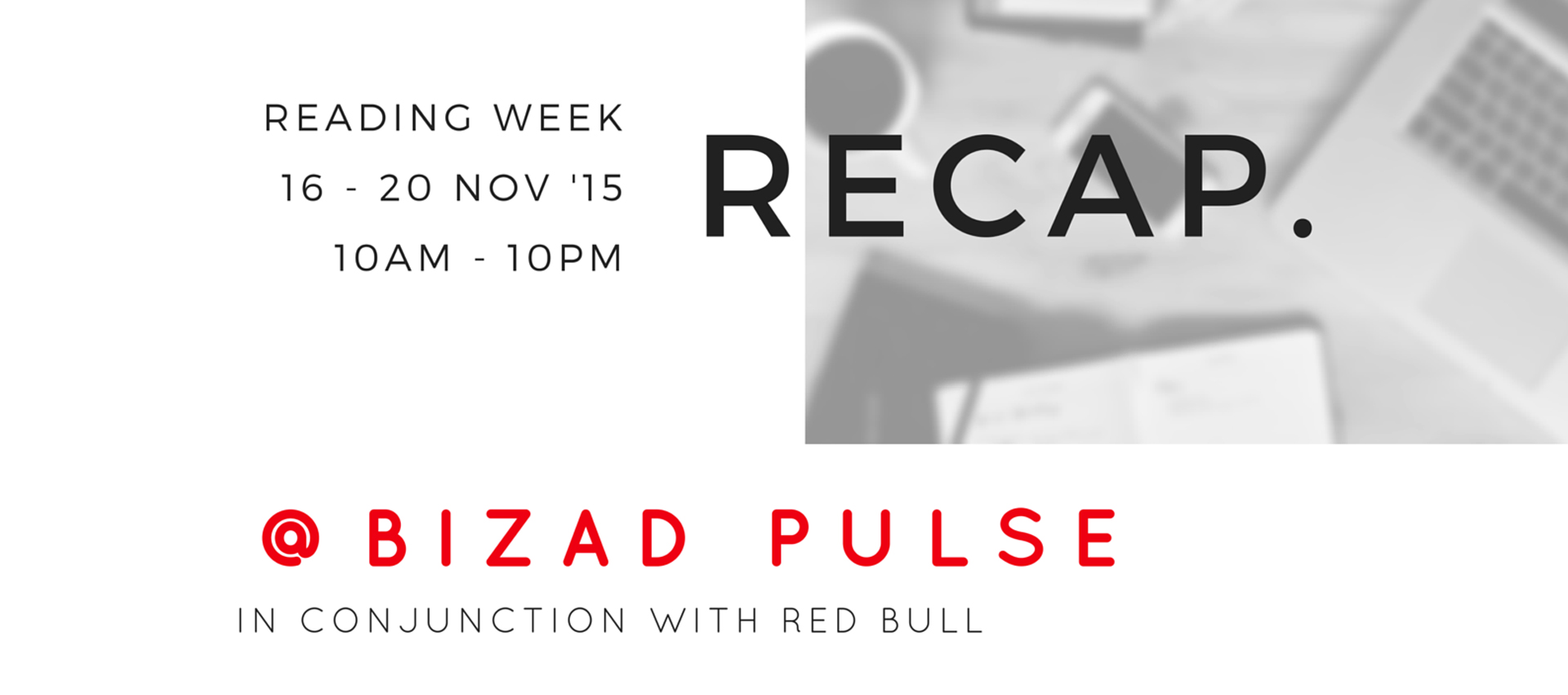 Hello fellow Bizaders! The first semester is about to end and Finals are just around the corner! We know many of you are studying hard night and day to prepare. In lieu of this, Bizad Club is transforming the Pulse into a convenient and conducive study lounge for you!